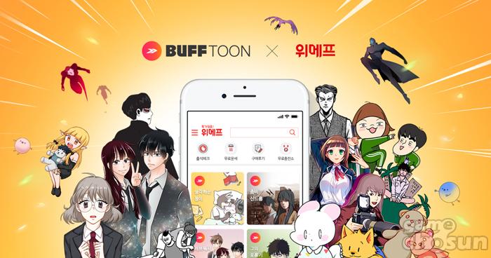 ... 웹소설, 오디오북, 미니게임 등 각종 콘텐츠도 담겨있다. 엔씨소프트는 위메프 모바일 어플리케이션에서 버프툰의 웹툰 서비스를 시작했다. 위메프 이용자는 ‘출첵/운세’ 카테고리에서 버프툰의 콘텐츠를 확인할 수 있다