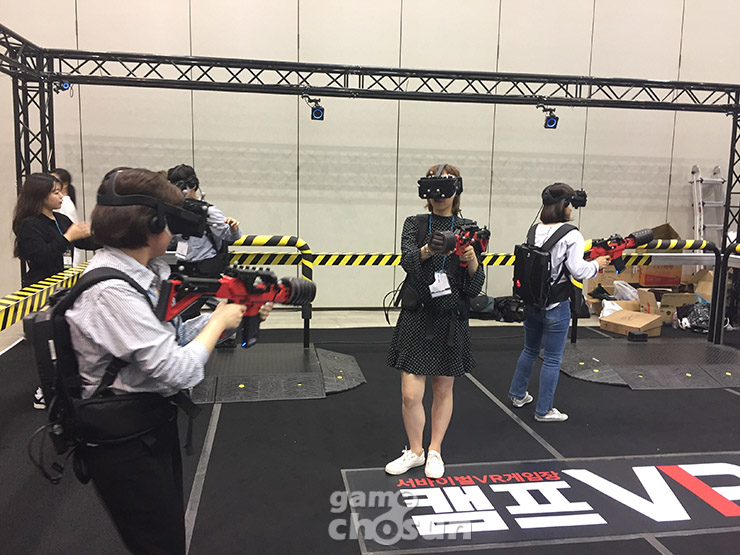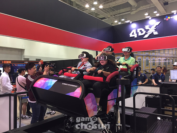 ... 전시관에는 현장을 찾은 관람객들과 업계 관계자들이 직접 VR 기기를 시연했다. △ 현장에는 VR 산업의 현재와 미래를 직접 체험해볼 수 있다. △ 현실에서 경험하기 쉽지 않은 비행기 조종도 가능하다