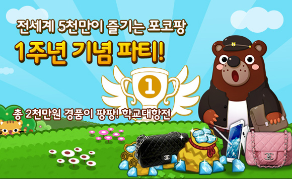 ... 먼저, 명품백과 최신형 휴대폰, 문화상품권 등을 선물로 제공하는 행운의 세잎클로버 이벤트를 진행, 친구들에게 ‘클로버’를 보내고 획득한 응모권으로 이벤트 참여가 가능하며, 응모를 많이 할수록 당첨확률도 높아진다. 서비스 1주년을 기념해 모든 이용자에게 게임 내 재화인 ‘다