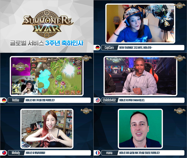 ...유튜브, 트위치 등을 통해 활발히 방송 중인 현지 스트리머와 현지 커뮤니티 운영자 등 각 지역을 대표하는 유명 유저들이 기쁨을 함께 했으며, 최근 미국 현지에서 진행된 e스포츠 대회 해설자들도 ‘서머너즈 워’와 함께 해온 추억과 향후 서비스에 대한 기대를 남겨 눈길을 모았다. 해당