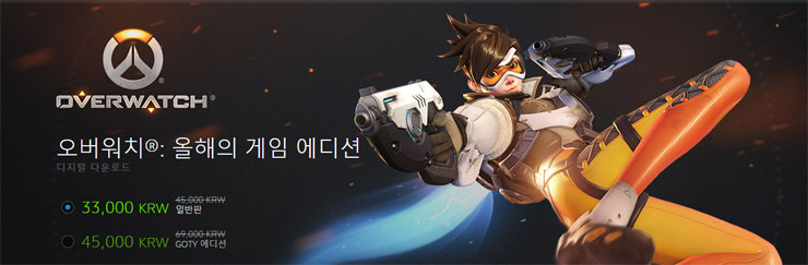 ... 블리자드엔터테인먼트(대표 마이크 모하임)는 자사의 팀 기반 슈팅 게임 '오버워치'의 출시 1주년을 기념해 패키지 할인 판매를 진행한다고 24일 밝혔다. 오버워치 일반판 디지털 다운로드 버전은 기존 4만 5000원에서 할인해 3만 3000원에 판매된다. 이와