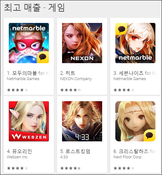 ... 넥스트플로어의 '크리스탈하츠'는 2월 19일 사전 출시하고 23일 정식 출시된 게임으로 2월 28일 매출 12위에서 3월 1일 6위로 여섯 계단 상승했다. 네시삼십삼분의 '로스트킹덤'은 22일 사전 출시하고 25일 정식 출시해 2월 28일 13위에서 8계단 상승해 5위에