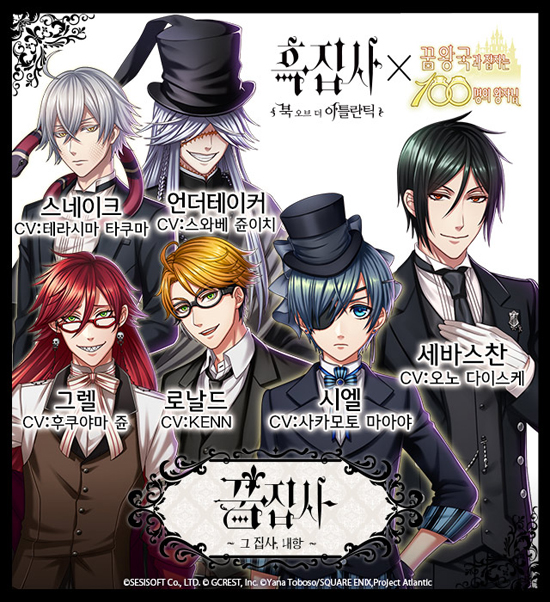 ...이번 콜라보는 ‘킹오브프리즘’에 이은 두 번째로 ‘흑집사:북오브더아틀란틱’에 나오는 주요 인물인 세바스찬, 시엘, 그렐, 로날드, 언더테이커, 스네이크가 꿈왕국의 이벤트 캐릭터로 등장한다. ‘꿈왕국’과의 콜라보에서 캐릭터의 각성 성향에 따라 극장판 애니메이션에서 보여주지 못한