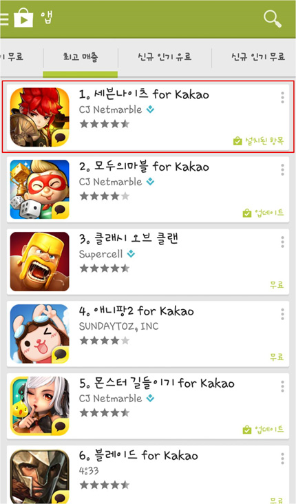 ... 특히 세븐나이츠는 신규 콘텐츠 업데이트와 TV 광고에 힘입어 처음으로 구글 플레이 최고 매출 부문 1위를 차지하는 기염을 토했다. 넷마블은 지난 13일 9번째 모험 지역인 ‘천자의 땅’과 신규 캐릭터 등 다수의 콘텐츠를 추가하는 가을 맞이 업데이트를 실시한 바 있다. 이와