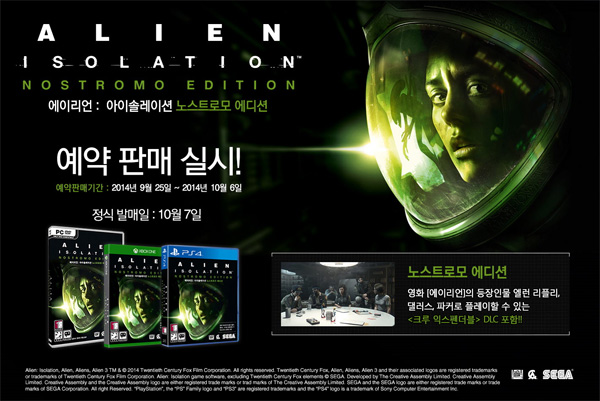 ... 아무런 준비가 되지 않은 상황에서 이용자는 재료를 수집하고 필요한 아이템을 제작하는 등 기지를 발휘해 미션을 해결하고 에이리언으로부터 살아남아야 한다. 에이리언: 아이솔레이션의 초도 수량은 보너스 콘텐츠인 '크루 익스펜더블'을 포함한 노스트로모 에디션으로 제공될 예정이다.