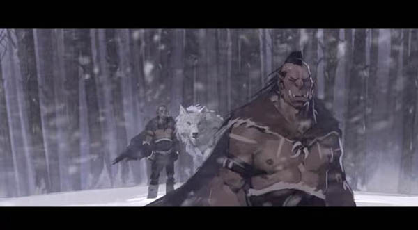... 애니메이션에서는 듀로탄이 갈래발굽을 사냥해 유목생황을 하던 중 어머니 게야가 치명적인 질병에 걸려 쓰러졌을 때 떠나느 동료를 뒤로하고 어머니와 그녀의 수호늑대인 폭풍송곳니 곁에 남기로 한다. 숲 속에 남겨진 이들이 거대한 검은 늑대 무리 '가른'의 공격을 받아 맞서 싸우던