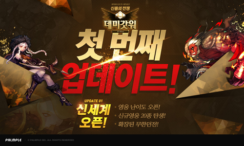 ... 다른 영웅인 아르주나는 불의 속성을 가진 6성 영웅으로 가니드 차원에서 획득할 수 있다. 또 큐피트는 나무의 속성을 가진 4성 영웅이며 아케론 차원에서 확인할 수 있다. 또한 게임 내 최상위 영웅 난이도는 데미갓워의 다섯 번째 난이도로 극강의 마스터들이 도전하는 새로운