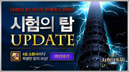 ... 더불어 10층 단위로 등장하는 보스와의 대전에서 승리하면 에너지, 크리스탈, 데빌몬, 신비의 소환서, 빛 어둠 소환서 등 보스별 푸짐한 보상을 획득할 수 있다. 또한 최종 목표인 100층까지 시험의 탑을 모두 완료한 유저에게는 물불바람 속성 중 태생 4성 이상인 몬스터 1종을