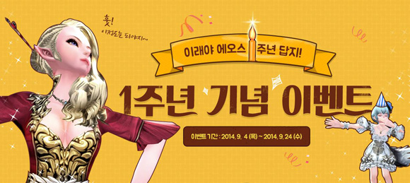 ...먼저 1주년 기념 선물로, 이벤트 기간 동안 1시간 이상 플레이한 날이 11일 이상이 되면 깜찍한 루팅 펫인 ‘아기 라마’를 제공한다. 또한 플레이 1시간 마다 1주년 기념 선물상자를 받을 수 있고, 이 상자를 통해 드라켄, 소라게, 매직램프, 상급가방, 던전이용권 등의 아이