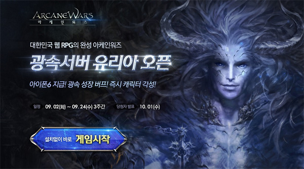 ... 60레벨을 달성하면 추첨으로 1명에게 아이폰6를, 30레벨 달성자 100명에게 문화상품권 5천원권을 증정하며, 캐릭터를 생성한 유저 중 100명에게 스타벅스 커피쿠폰 5천원권을 선물할 예정이다. 또 레벨 구간에 따라 스페셜 아이템인 장비세트를 전원 제공한다. 추석 연휴를