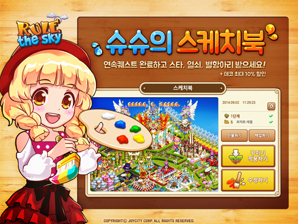 ... 또, 손수 스케치한 가상의 플로티아를 보관하거나 친구에게 선물하는 기능을 더해 꾸미기 재미를 한층 높인 점도 특징이다. 조이시티는 이를 기념해 ‘제 1회 플로티안 DIY 데코 대회’를 개최한다. 참여를 위해서는 ‘스케치북’을 활용해 만든 나만의 데코를 유저 갤러리에 등록하면
