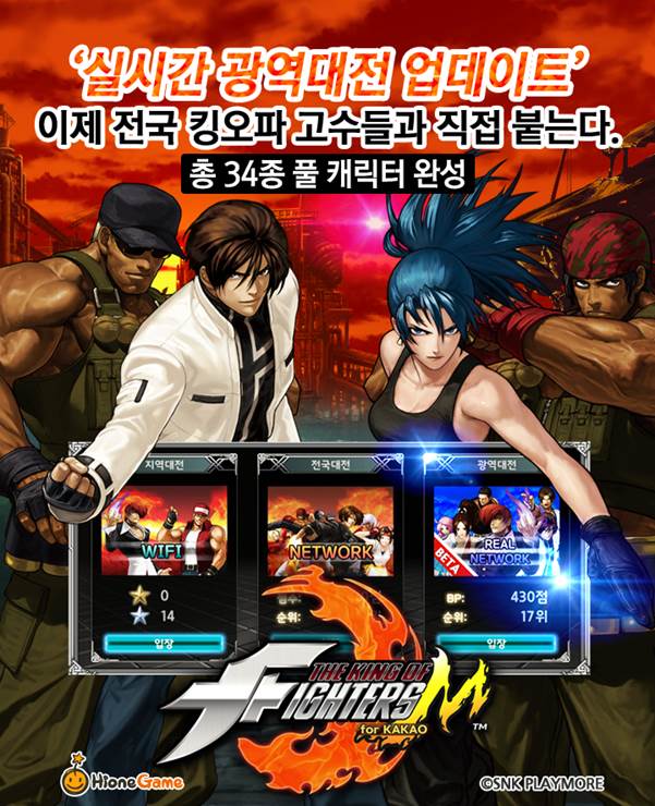... 하이원ENT는 이번 광역대전 시스템 업데이트를 통해 이용자들이 오락실에서 느꼈던 경쟁과 승리의 짜릿함을 비롯해 90년대 오락실에서 즐겼던 도장깨기의 즐거움을 모바일에서 실현할 수 있을 것으로 기대를 모으고 있다. 또한 KOFM for Kakao는 이번 업데이트와 함께 레오나