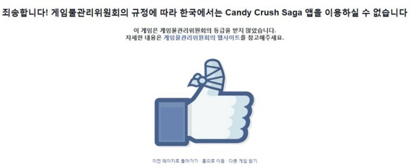 ... 페이스북 계정 기반의 모바일게임과 등급분류를 받은 온라인게임의 경우엔 이용이 가능하지만, 아무런 예고 없는 차단조치에 게임 개발사들은 당혹감을 감추지 못했다. 문화부에 따르면 게임물 심의기관인 게임물관리위원회는 페이스북을 통해 서비스되는 카지노 묘사 불법 게임물과 사행성 유발
