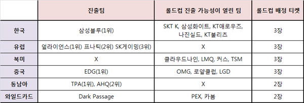... 이에 많은 e스포츠인들의 관심이 집중되고 있는 롤드컵에 대해 좀 더 많은 정보를 드리고자 이 코너를 준비했다. <편집자 주> 롤드컵 본선에 진출할 각 지역 대표팀들이 하나둘씩 확정되고 있다. 롤챔스와 NLB의 성적을 기반으로 서킷포인트 제도를 도입한