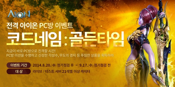 ... 또 추석 연휴 기간인 9월 7일부터 9월 10일까지 PC방에서 게임에 접속한 이용자는 경험치와 어비스 포인트를 2배로 받을 수 있는 것으로 알려졌다. 한편, 엔씨소프트는 지난 7월 PC방을 찾는 게임 이용자를 늘리고 PC방 업주에게도 혜택이 늘어나는 PC방 상생 계획을 밝