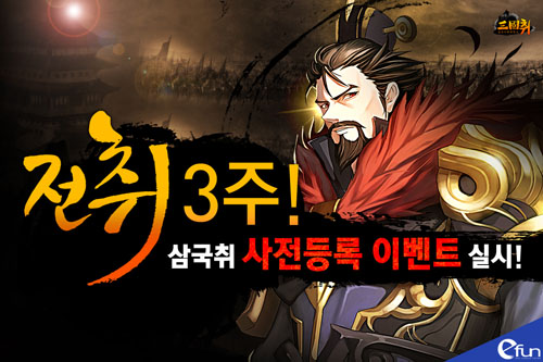 ... 26일(화)부터 시작되는 삼국취 사전예약은 공식 사전 예약 사이트에서 휴대폰 번호 입력만으로 누구나 간단하게 신청할 수 있으며 참여자 전원에게는 게임 런칭 시 사용할 수 있는 아이템 패키지를 100% 지급하고 삼국취 사전예약을 홍보하는 유저들에게는 최대 700금화를 추가로 증정