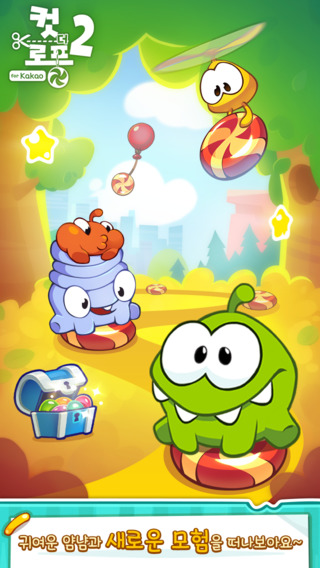 ... 특히 컷더로프2 for Kakao는 한국을 위한 특별판으로, 전작에서 볼 수 없었던 로토, 릭, 블루, 토스, 부라는 개성 넘치는 다섯 명 친구들과 한국만을 위해 제작된 아이템이 등장한다. 또한 지인들과 함께 즐길 수 있는 대전모드, 그리고 다른 유저들과 실력을 겨룰 수 있