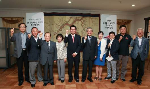 ... ▲ 사진설명. 좌측부터 공훈의 위키트리 대표, 김원기 문화재활용국장, 안위준 국외소재문화재재단 이사장, 나선화 문화재청장, 이승현 라이엇게임즈 한국대표, 김종규 문화유산국민신탁 이사장, 정경환 EBS 사회협력부장, 김은용 EBS 사회협력부 PD, 권정현 라이엇게임즈 상무