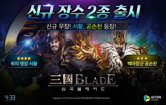 ... 게임 내에서는 아군 전체의 치명타 피해량을 증가시키는 기술과 검기를 날리는 등 강력한 공격으로 전장을 압도한다. 50번째 장수로 등장한 위나라 장수 서황은 촉나라의 관우, 오나라의 주유, 서량의 마초까지 격파하며 명성을 쌓은 맹장으로, 거대한 대부를 휘두르며 광범위한 적들에게 큰