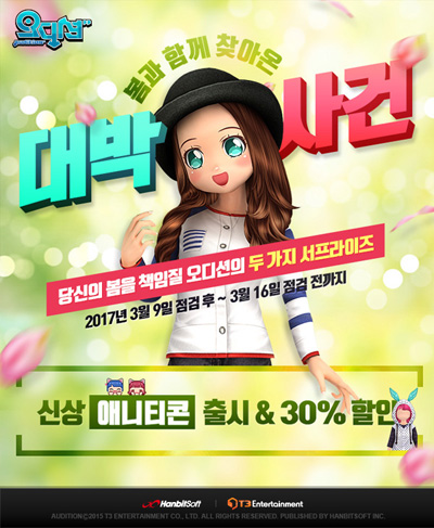 ... 이와 함께 오디션은 쇼핑몰 아바타, 커플샵 아바타, 기능성 아바타, 커플가든 & 맥가든 아이템 전품목을 30% 할인된 가격에 제공한다. 단 라이선스 품목, 신규 상품, 시크린가든 허브패키지는 할인이 적용되지 않는다. 또 유저들은 이번 이벤트 기간 동안 커플샵 1