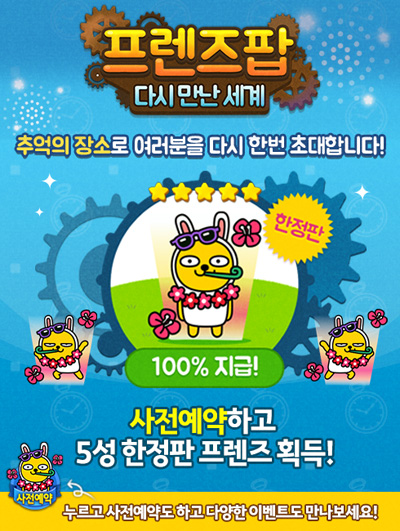 ... 메인 이벤트는 총 7종의 ‘파티피플 프렌즈’를 보상으로 제공하는 이벤트로, 능력치가 높은 프렌즈를 무료로 얻을 수 있는 기회를 제공한다. ‘파티피플 프렌즈’는 업데이트와 함께 추가될 예정인 4~5성 한정 신규 프렌즈다. 이벤트 기간 내에 주어진 목표를 달성하면 7종의