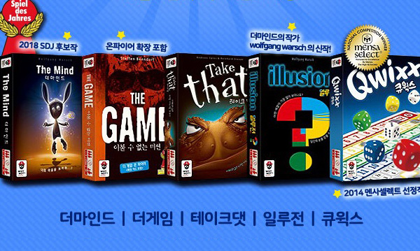 ... ◆ 팝콘에듀, 신작 5종 공개! 팝콘에듀 선주문 보드게임 5종 = 팝콘에듀공식사이트 팝콘에듀가 신작 보드게임 5종을 한꺼번에 공개했다. 지난 보드게임페스타에서도 공개한 '더마인드'와 '더게임', '테이크댓', '일루전', '큐윅스'가 바로 그것이다. 이중