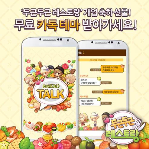 ... 두근두근레스토랑의 카카오톡 테마는 오는 25일까지 진행되는 사전 등록 프로모션에 참가하면 누구나 다운받을 수 있고 별도의 유효기간이 없다. 이와 함께 사전 프로모션에 참여하면 게임 출시시 한정 아이템과 친구와의 대화에서 유용하게 사용되는 특별제작 이모티콘 등도 제공된다.
