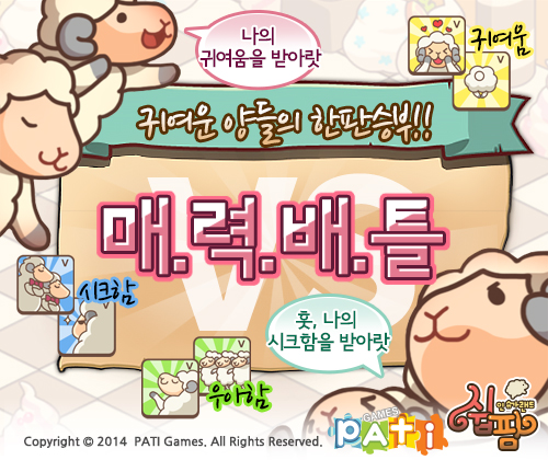 ...이번에 추가되는 매력배틀은 자신이 보유한 양들을 꾸준히 훈련시켜 서로 상성 관계인 귀여움, 우아함, 시크함의 3가지 매력으로 다른 유저의 양들과 겨루는 방식으로 진행된다. 배틀에는 직접 선택한 3마리의 양이 참여할 수 있으며 일주일간 누적된 점수에 의해 정해진 랭킹 순위에 따라