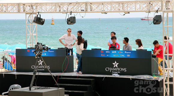 ... ▲ 결승전 준비에 한창인 영어와 중국어 중계진 ▲ 롤챔스 서머 버프걸 고윤선 양도 이벤트에 한창! ▲ '뭐야, 어디로 가는거야' 리허설 중인 KT애로우즈 ▲ '아따, 이렇게 넓은데가 다차는겨?' 관중석을 바라보는 삼성블루 한편 롤챔스 해운대 결승전에는 인
