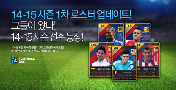 ... 14일에 진행되는 1차 업데이트에는 한국시간 8월 1일 기준으로 이적 완료한 선수 약 400여 명을 우선 적용하고, 이적시장 종료 이후 9월 16일에 최종 결과를 반영한 2차 업데이트를 진행할 예정이다. 1차 업데이트를 통해서는 레알 마드리드로 이적한 브라질 대회 골든 부트