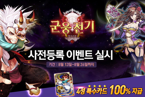 ... 또한 등록기간 중 자신의 친구를 초대만 하면 120 캐시를 증정하고 문화상품권 50장과 외장배터리 10개를 추첨해서 증정하는 등 푸짐하게 상품을 지급한다. 이 게임의 특징은 삼국지에 등장하는 다양한 캐릭터와 함께 펼쳐지는 배틀 액션+RPG+TCG가 결합된 플레이 스타일이 눈길