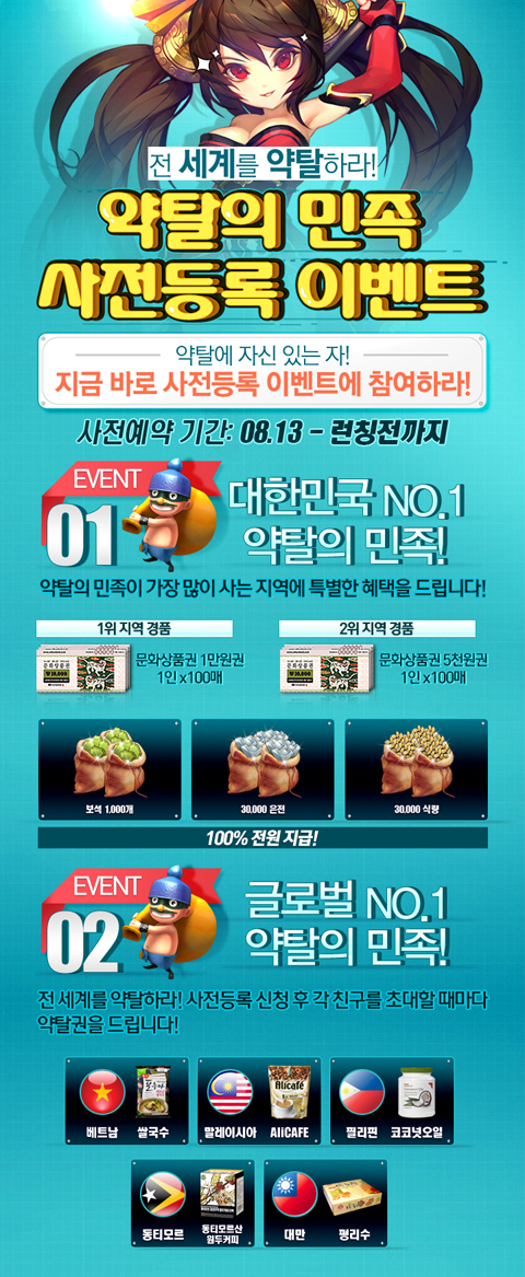 ... 이러한 기대의 결과로 약탈의민족은 지난 7월 진행한 사전 예약 알림 이벤트에서 신청자 10만 명을 모집하며 흥행을 예고하고 있다. 글로벌 서버를 통해 국가 간의 치열한 전투를 예고하며 기대감을 고조시키고 있는 약탈의민족은 사전예약 시작을 기념해 특별하고 풍성한 이벤트를 실시한