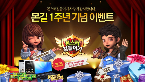 ... 이에 넷마블은 이용자들의 성원에 보답하고자 다양한 혜택을 제공하는 이벤트를 준비했다. 먼저 ‘몬스터 길들이기’ 1주년이 되는 13일 하루 동안 게임 접속만 해도 황금란, 5성 황금 꿀벅지, 수정 100개, 꿀벅지의 생일선물 등으로 구성된 1주년 스페셜 패키지를 제공한다. 게임