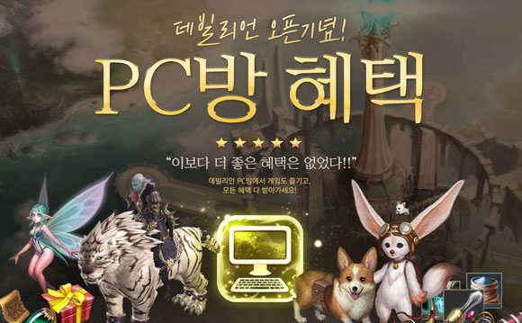 ... 이 탈 것은 이동속도 50%와 물리회피 확률 20%를 부여받고, 이동 시 위협도 감소가 추가되는 특징이 있다. 플레이하면 할수록 보상이 커지는 'PC방 타임별 이벤트'도 있다. '데빌리언'을 플레이 시작한 후 특정 시간마다 게임 아이템이 주어져 원활한 플레이가 가능하다