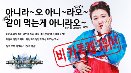 ... 극대화된 스킬 효과와 강조된 액션성을 필두로 하여 이용자들의 뜨거운 호응을 얻고 있는 월드오브다크니스는 출시 이후 신규 인기 무료게임 비카톡 1위, 인기 무료게임 비카톡 2위를 유지하고 있으며, 폭발적인 유저 유입 증가세로 신규 채널을 꾸준히 증설해 갈 예정이다. 정호영 레