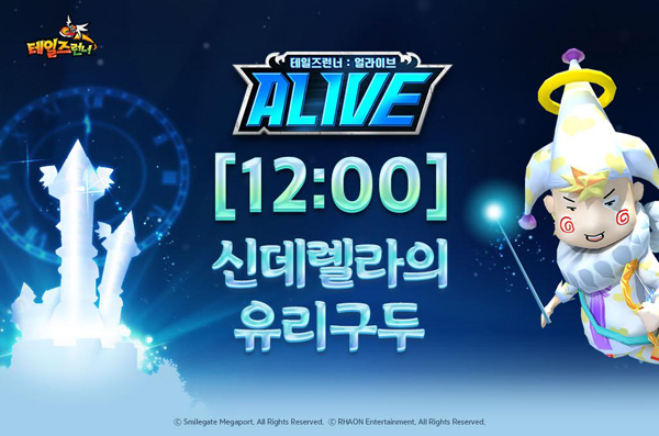 ... 테일즈런너 얼라이브는 내달 18일까지 약 두 달간 지속적으로 신규 콘텐츠를 추가할 예정이다. 이에 따라 스마일게이트는 첫 업데이트로 ‘신데렐라의 유리구두’를 추가했다. 이번 업데이트로 12시가 되어 집으로 되돌아가려는 신데렐라와 벗겨진 유리구두를 전하려는 왕자, 그리고 왕자를
