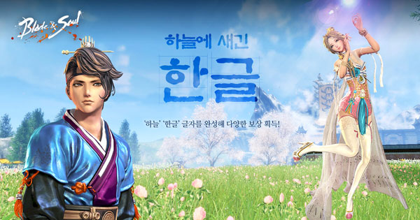 ... 블소 이용자들은 일일 도전 보상과 일일 퀘스트(흑룡교 지하감옥, 잊혀진 무덤, 지옥의 용광로, 나류 성지, 법기 연구소, 흑룡교 비밀전당 던전 퀘스트)를 통해 ‘훈민정음 주머니’를 획득할 수 있다. 훈민정음 주머니 개봉 시 ‘ㅎ’, ‘ㅏ’, ‘ㄴ’, ‘ㄱ’, ‘ㅡ’ , ‘ㄹ’