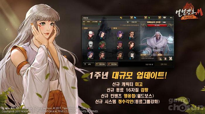 ... ‘미고’의 공격방식은 한옥신장을 이용한 석화(이동 불가) 등 적의 상태를 변화시키는 공격이며, 이를 이용해 추가 피해를 입히는 것이 특징이다. 이와 함께, 신규 동료 ‘검황’을 추가했다. 열혈강호 세계관 내 천하 오절 중 한 명이자 주인공 ‘담화린’의 할아버지인 ‘검황’은 최고