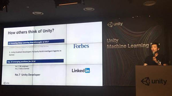 ... 먼저 오주용 유니티 코리아 전략 담당 팀장이 게임과 비게임 분야에서 활용할 수 있는 유니티의 머신러닝 기술에 대해 소개했다. 또한 유니티 본사 머신러닝 담당자인 제프리 쉬(Jeffrey Shih) 유니티 시니어 프로덕트 매니저는 유니티를 통해 가상 환경을 구축하고 시뮬레