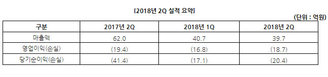 ...5%대로 회복하며 관리종목 지정 사유가 해소된 것. 와이디온라인은 2018년 2분기 연결기준 매출액 40억원, 영업손실 19억원, 당기순손실 20억원을 기록했다. 전년동기 대비 매출은 감소했고 적자는 지속이다