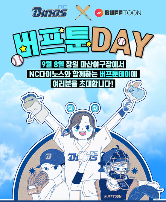 ... 회사 측은 버프툰데이를 기념한 사전 이벤트도 진행한다. 이용자는 9월 2일까지 관심 작품 구독, 작품 댓글 작성 등 미션에 참여해 ‘별’을 모을 수 있다. 누적된 별 개수에 따라 다이노스 한정판 유니폼, 야구 관람 티켓, 사인볼 등을 받을 수 있다
