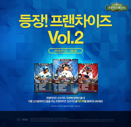 ... 이번에 추가된 선수는 삼성의 양준혁, 롯데 마해영, 해태 이종범, SK 김광현을 포함해 총 16명이다. ‘프랜차이즈 선수카드’는 오직 신규 획득 시스템 ‘럭키 팩’을 통해서만 획득할 수 있고, 이번 ‘럭키 팩’ 시스템은 내달 20일까지만 이용할 수 있다. 또한, ‘럭키 팩