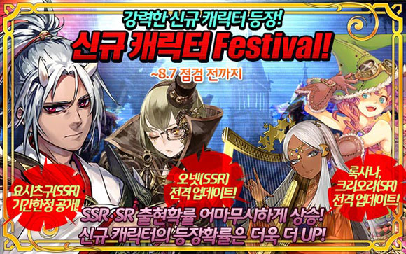 ... ‘오넷’은 신규 궁수 캐릭터로, 전장에 있는 다른 궁수 캐릭터를 강력하게 만드는 버프 능력을 갖고 있는 것이 특징이다. ‘요시츠구’와 ‘크리오나’ 등 신규 캐릭터는 31일부터 8월 7일까지 진행되는 ‘페스티벌’을 통해 얻을 수 있다. 해당 페스티벌에선 SSR 등급과 SR 등