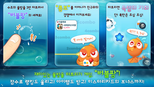 ... 아쿠아스토리는 2010년 싸이월드 서비스 당시 가장 많은 이용자 600만 명이 이용해 2년 연속 인기게임 1위를 기록한 선데이토즈의 대표 게임으로, 출시전 사전 예약에만 70만명이 응모해 높은 기대를 받고 있다. 이번에 카카오를 통해 출시되는 아쿠아스토리는 미니게임 버블팡이