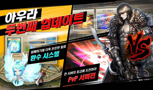 ... 함께 추가된 환수 시스템은 40레벨 이상의 지옥 던전 및 서버간 PvP 등 게임중 획득한 환수혼을 통해 소환이 가능하며 각 환수는 특색있는 스킬과 캐릭터 속성을 상승시켜주는 속성값을 보유하고 있어 각종 전투에 도움을 받을 수 있다. 또한 아우라 친구 초대 기능이 추가되어