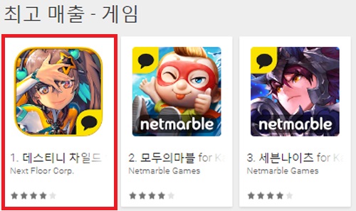 ... 먼저 10월 27일 출시된 넥스트플로어의 '데스티티차일드 for kakao'는 29일 매출 6위로 출발해 30일 3위에 오르고 31일부터 현재까지 1위를 유지중이다. 세븐나이츠와 모두의마블이 견고한 1-2위를 유지 중이었던 시장에 새로운 1등으로 등극한 것. 지