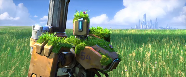... 바스티온은 10년 넘게 자연에서 잠들어있다가 갑작스레 재가동, 주변의 낮선 환경에 매료되어 주위를 탐색하지만 탑재된 전투 프로그램이 다른 지시를 내리는 것을 깨닫게 된다. 공개된 영상에서는 게임 내의 스킨인 '자연의 친구 바스티온'을 확인할 수 있으며 경계 모드로 변해 기관총을