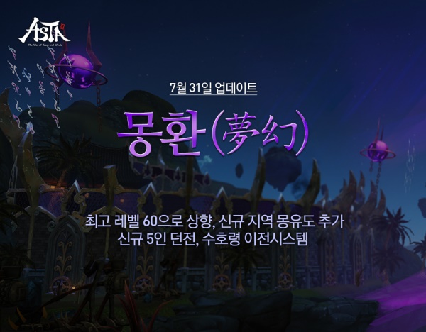 ... 먼저 '아스타'의 레벨 제한이 55에서 60으로 상향된다. 명성 등급과 무훈 등급 제한도 상향되어 ‘무신’ ‘대도’ 등의 칭호가 추가되며, 높아진 레벨에 맞춰 신규 무구와 방어구가 추가되고, 생산 직업 숙련도 등의 제한도 상향된다. 55레벨 이상 이용자들이 수행할 수