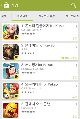 ...co. kr) 등에 기초하고 있습니다. <편집자주> CJ E&M 넷마블의 모바일 RPG '몬스터 길들이기 for Kakao'(이하 몬스터 길들이기)가 7월 14일 현재 구글플레이 매출 1위를 기록하며 변함 없는 인기를 과시하고 있다