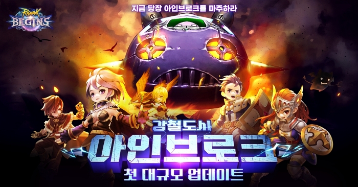 ... 그라비티는 라그나로크 비긴즈의 흥행을 이어가기 위해 다양한 신규 콘텐츠를 선보였다. 먼저 강철도시 아인브로크를 공개했다. 아인브로크는 강철을 두드리는 소리와 희뿌연 증기가 끊임없이 뿜어져 나오는 도시로 마법과 구분이 가지 않을 정도의 놀라운 경험을 제공한다